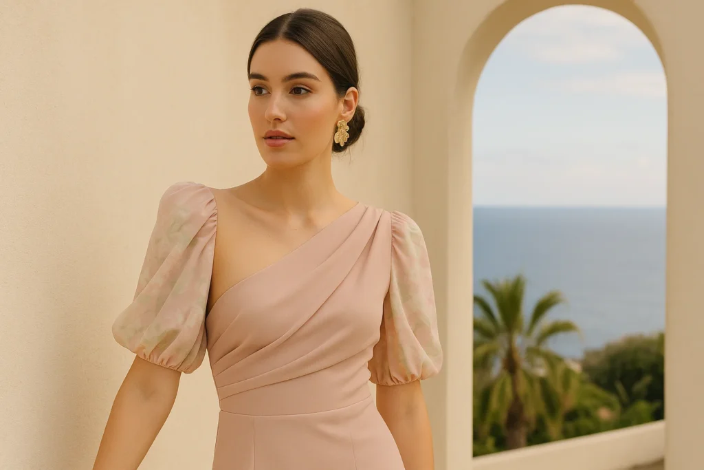 - Accesorios discretos pero con brillo: pendientes dorados o un clutch pequeño.