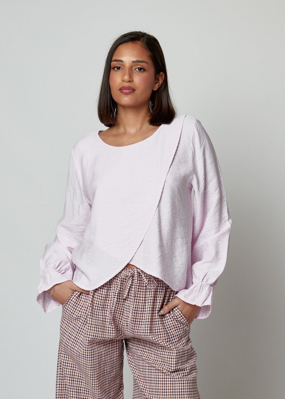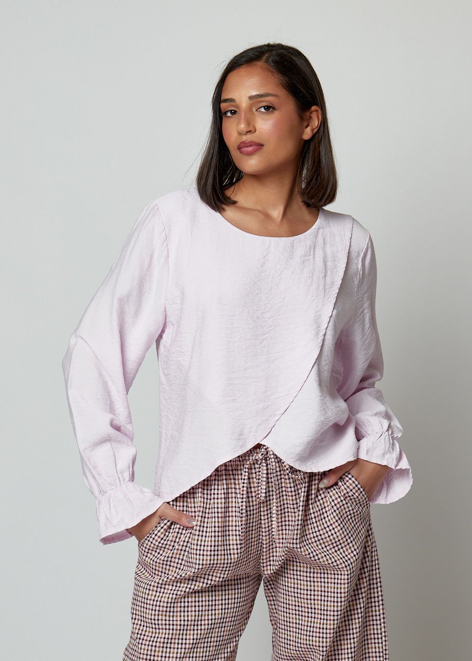 Blusa casual rosa pastel de tejido ligero y corte fluido. Un básico femenino y cómodo para primavera verano 2026.