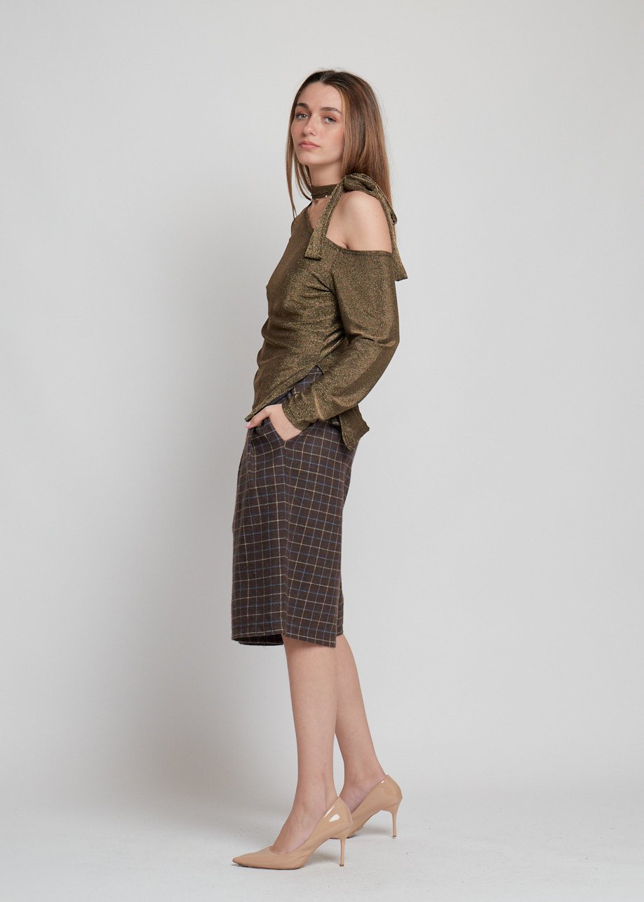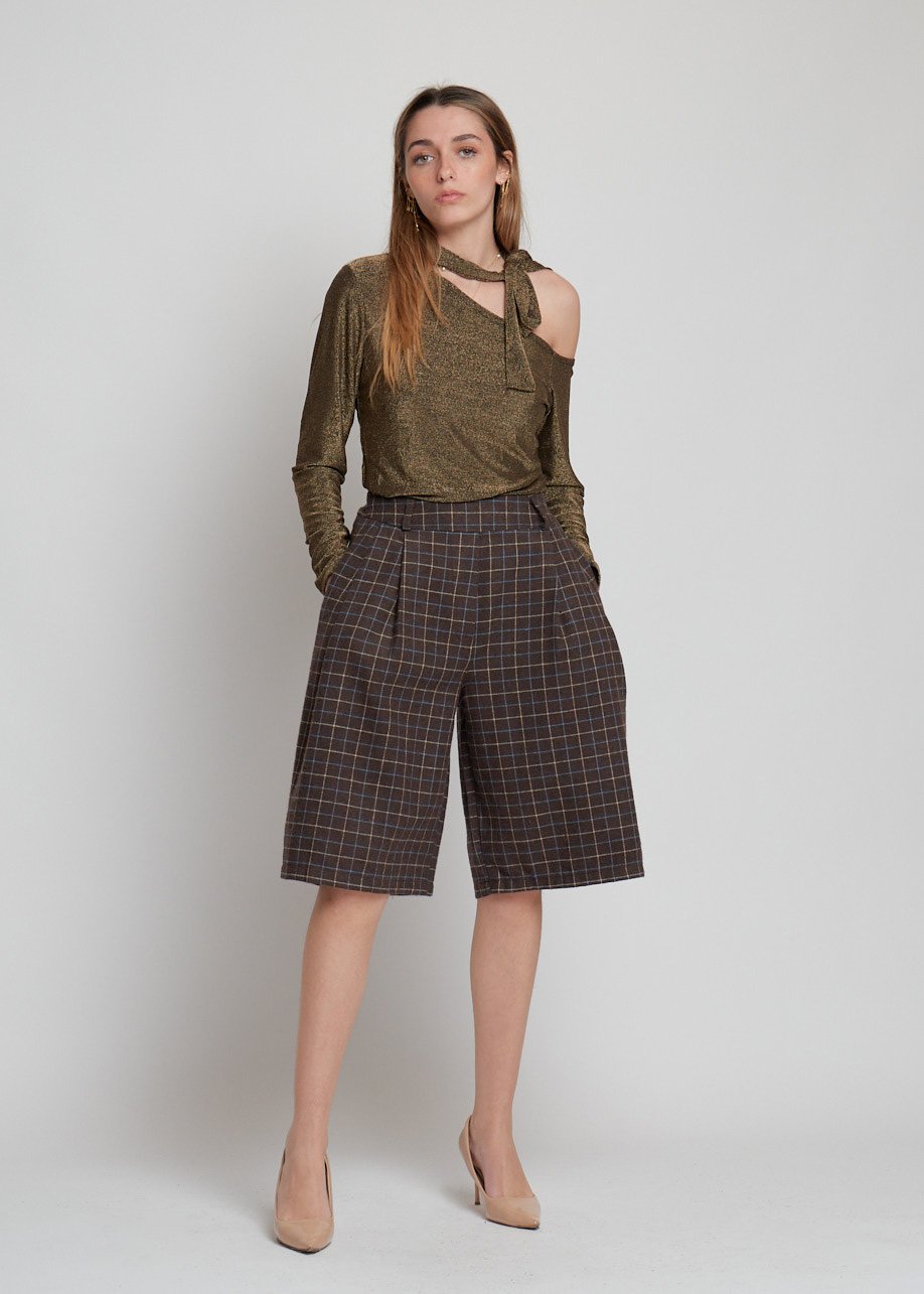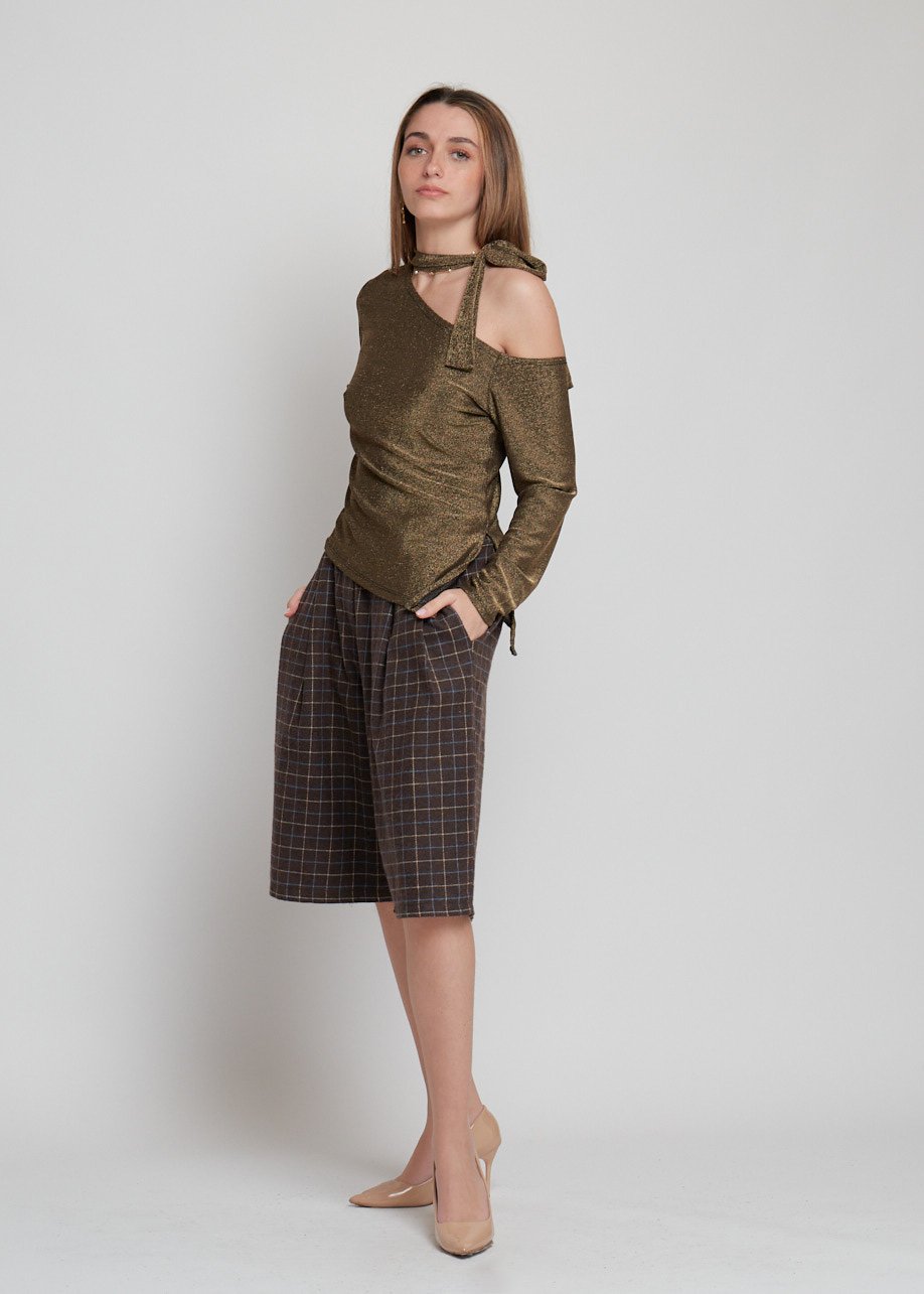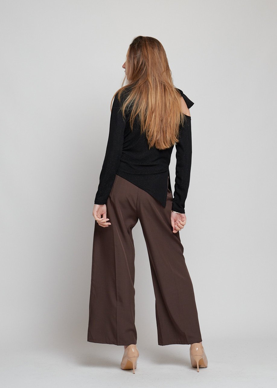 Blusa asimétrica con brillo y detalle al cuello. Moderna, elegante y perfecta para looks casual chic.