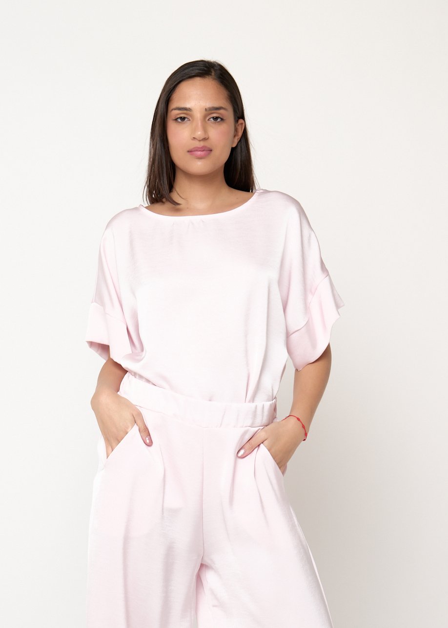 Blusa rosa de tejido fluido y corte relajado. Femenina, cómoda y perfecta para looks casual chic diarios.