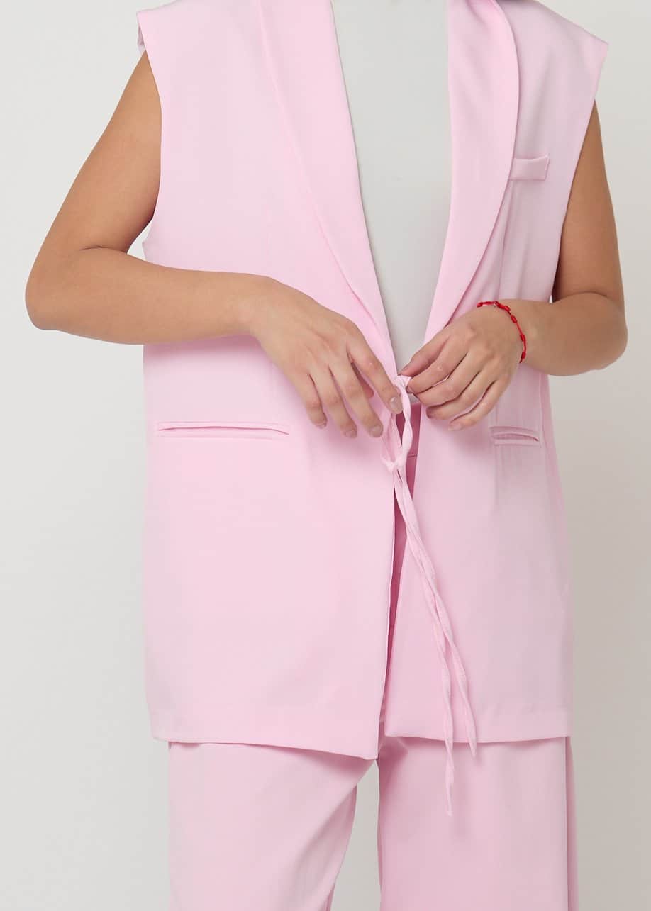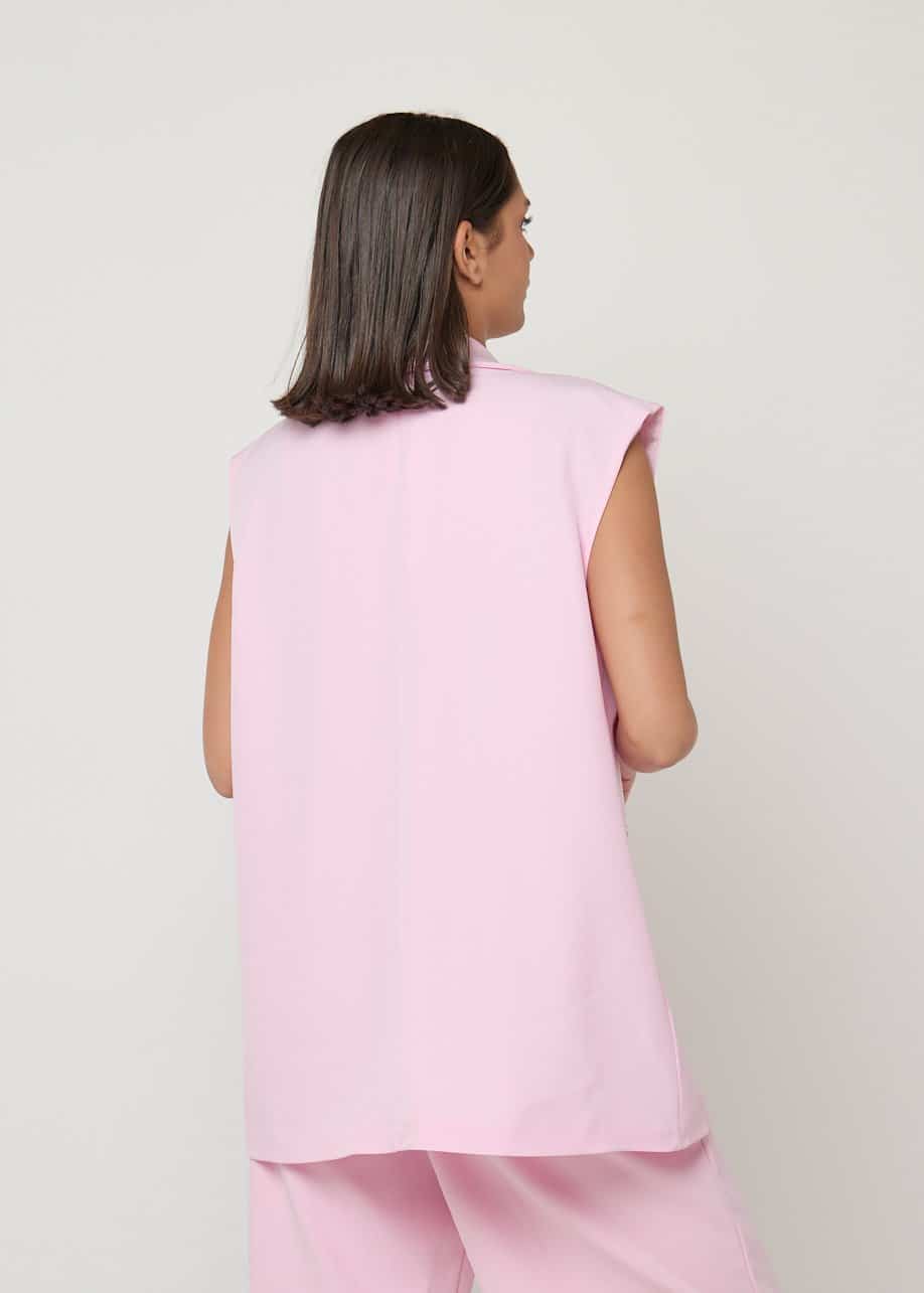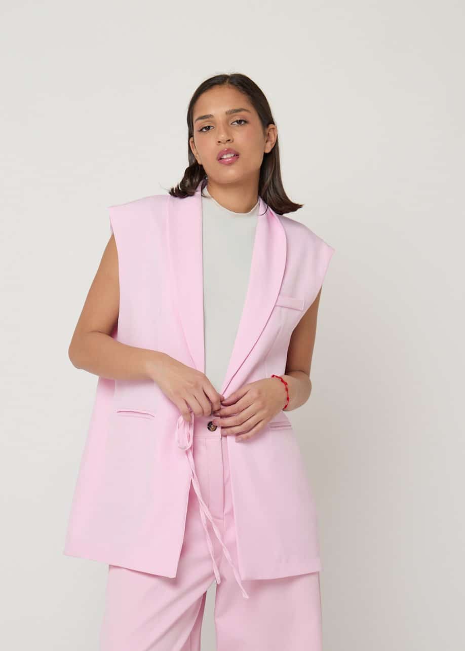 Chaleco rosa elegante para mujer estilo blazer sin mangas. Ideal para looks casual chic o conjunto sofisticado.
