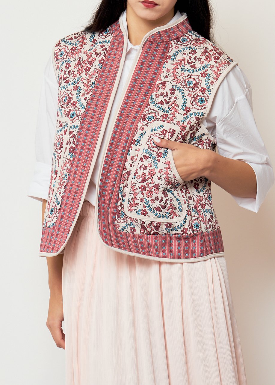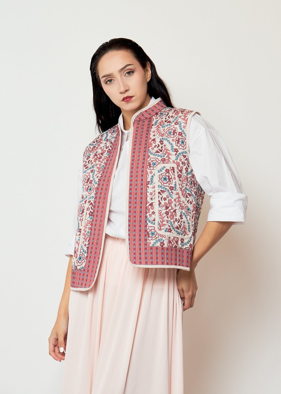 Chaleco Nerissa bordado con estampado floral. Ideal para looks boho chic femeninos y elegantes.