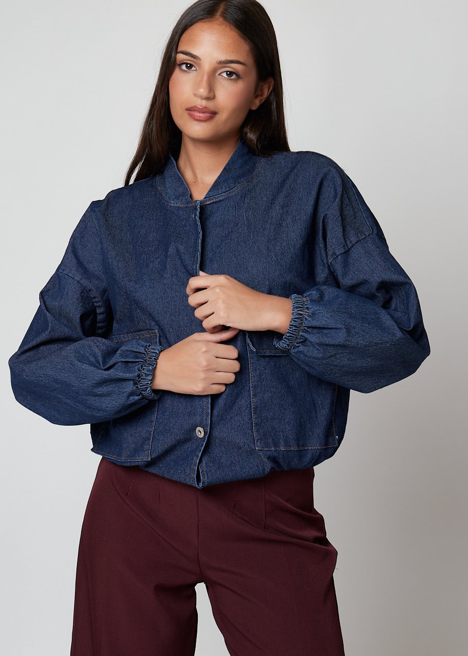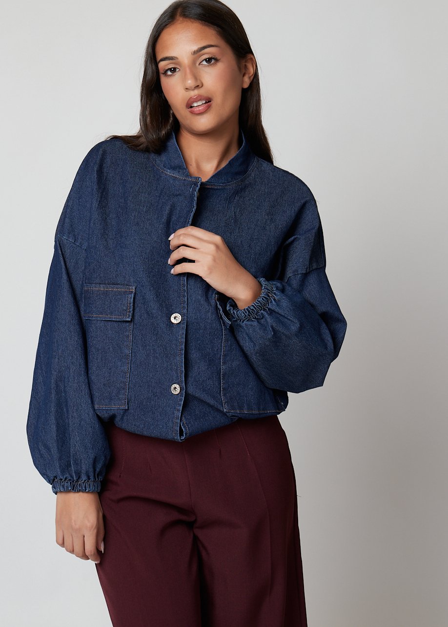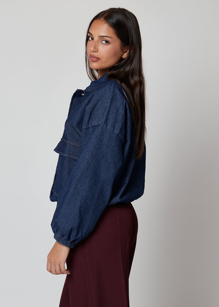 La Chaqueta Dora es la prenda ideal para quienes buscan un estilo casual con un toque moderno. Confeccionada en denim de alta calidad, destaca por su corte oversize y sus mangas abullonadas con puño elástico, que aportan comodidad y un aire desenfadado. Sus bolsillos frontales de solapa y el cierre con botones la convierten en una pieza práctica y funcional para el día a día.