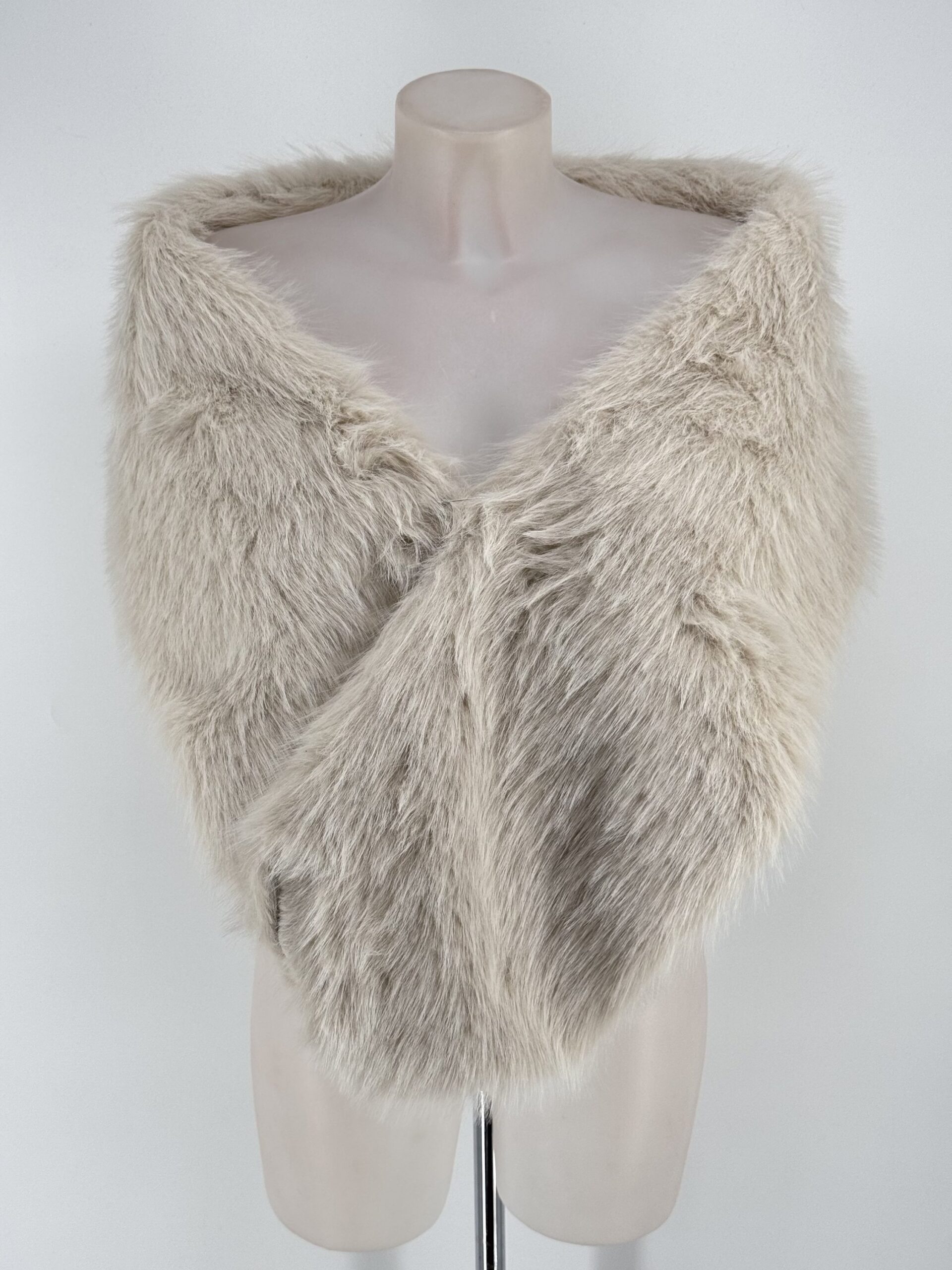 Estola de pelo sintético en tono beige, suave, cálida y elegante. El complemento perfecto para tus looks de noche.