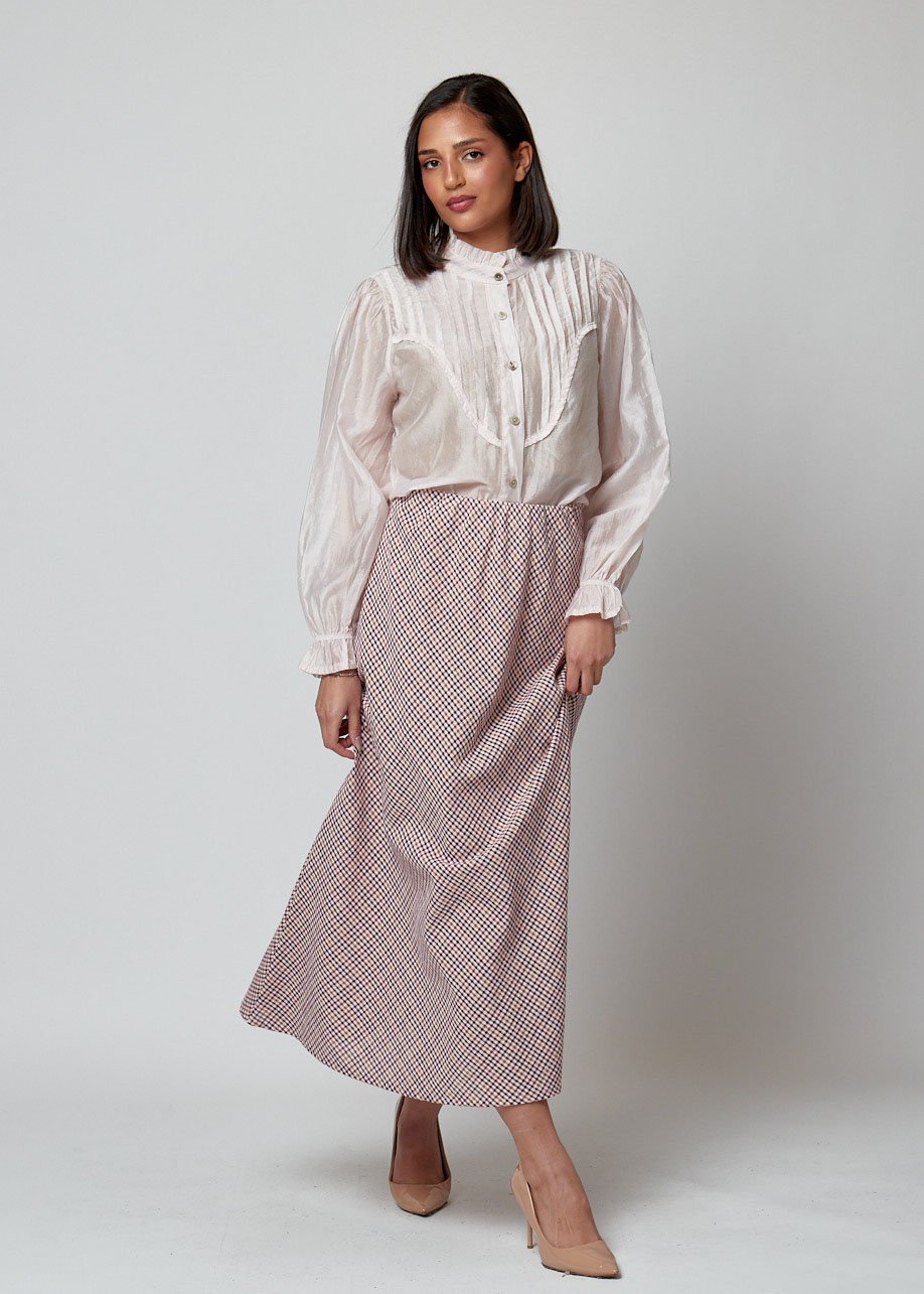 Combínala con blusas vaporosas, camisas románticas o prendas básicas para adaptarla fácilmente a diferentes momentos del día. Una falda versátil, atemporal y muy fácil de llevar.