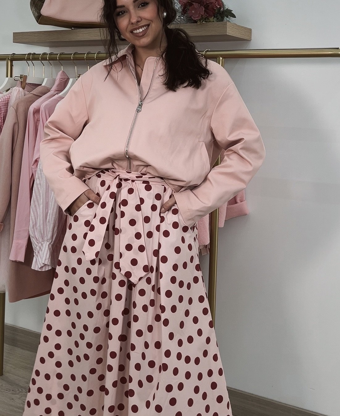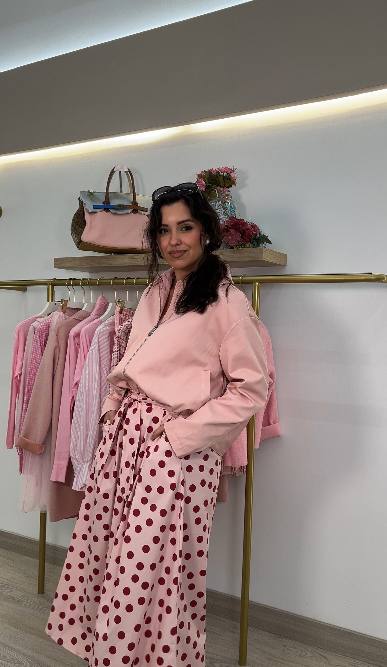 La Falda Dotty es una de las piezas más icónicas de la Colección Pastel Romance. Su estampado de lunares aporta un aire dulce y atemporal, mientras que la combinación de tonos suaves la convierte en una prenda fácil de integrar en looks diarios.