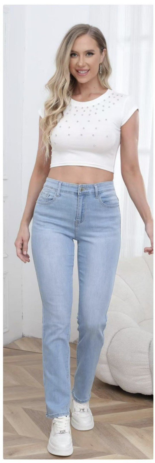 Confeccionados en denim azul claro, resultan cómodos y versátiles para el día a día. Ideales para combinar con tops ajustados, camisetas básicas o blusas suaves, creando looks casuales con un aire delicado y chic.