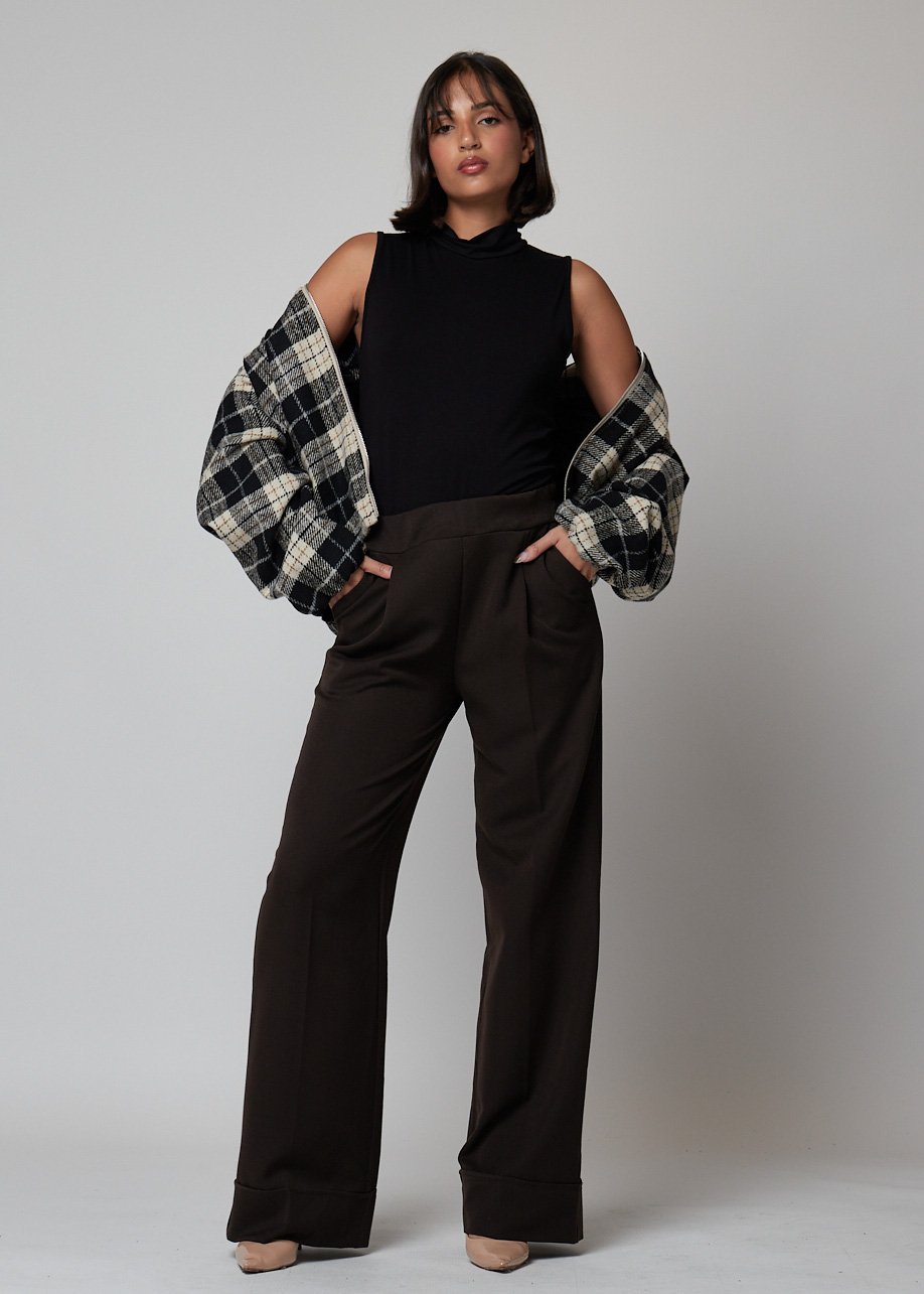 Pantalón wide leg en marrón chocolate, elegante y versátil para tus looks diarios. Comodidad, estilo y caída perfecta.