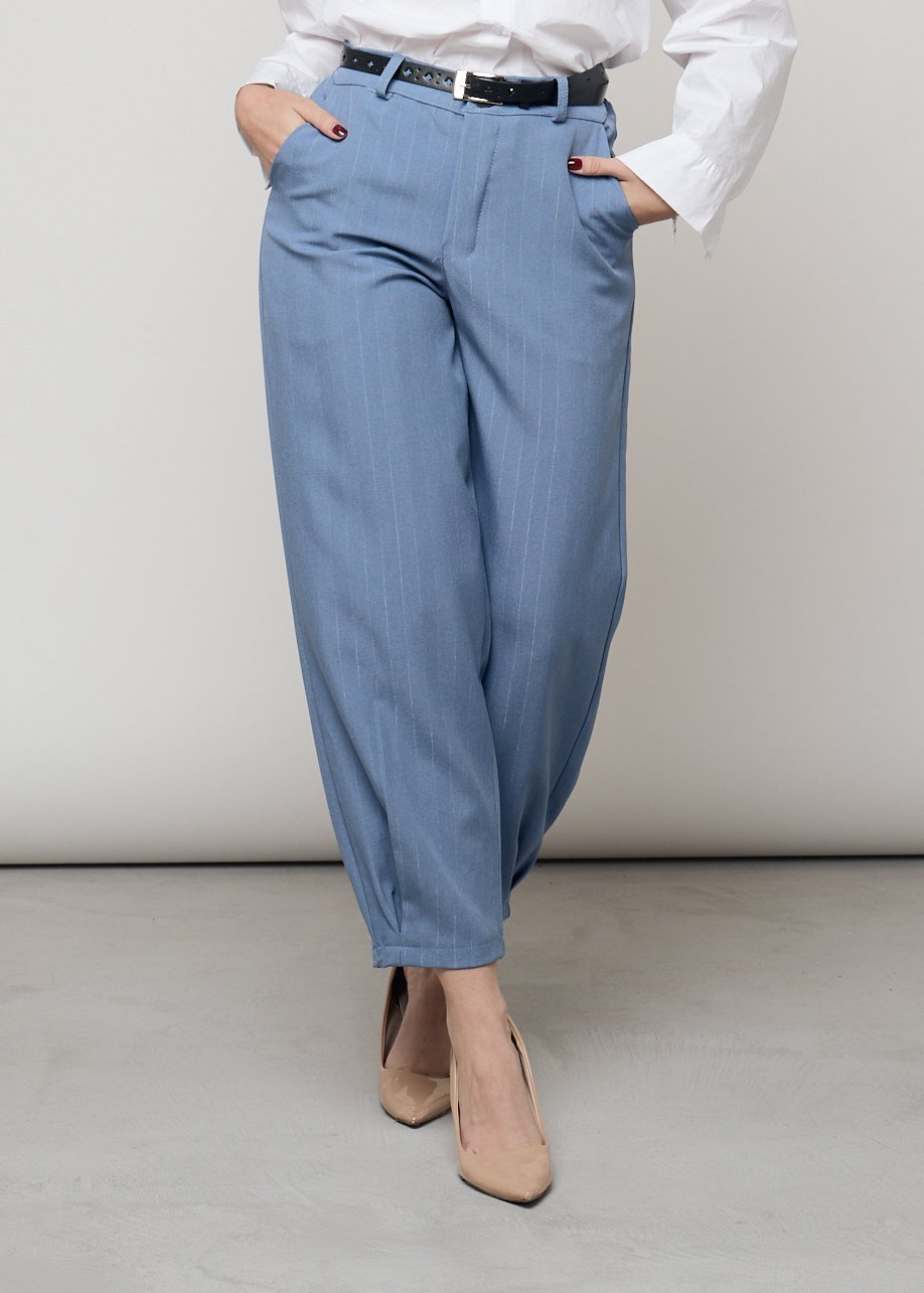 Pantalón palazzo azul de rayas con cintura alta y corte fluido. Elegante, cómodo y perfecto para looks casual chic.