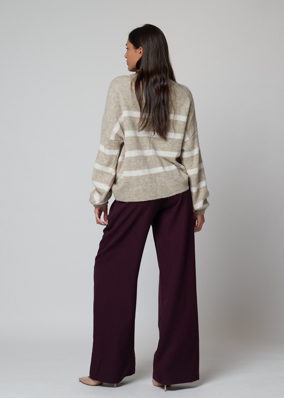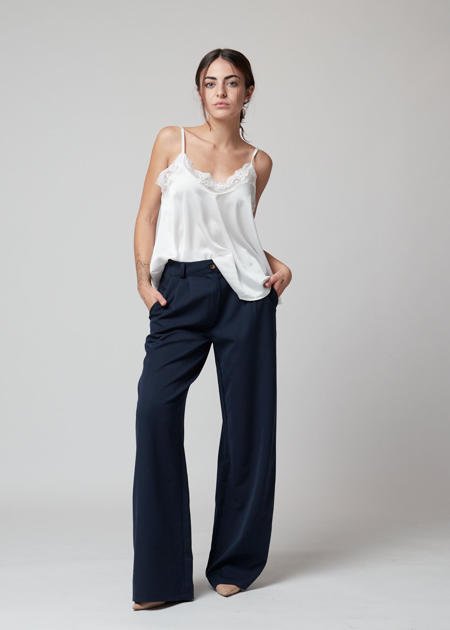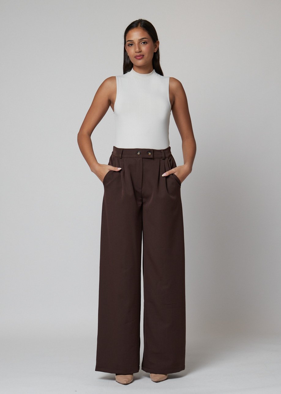 Pantalón ancho con pinzas, elegante y cómodo, perfecto para crear looks casuales o de oficina con estilo.