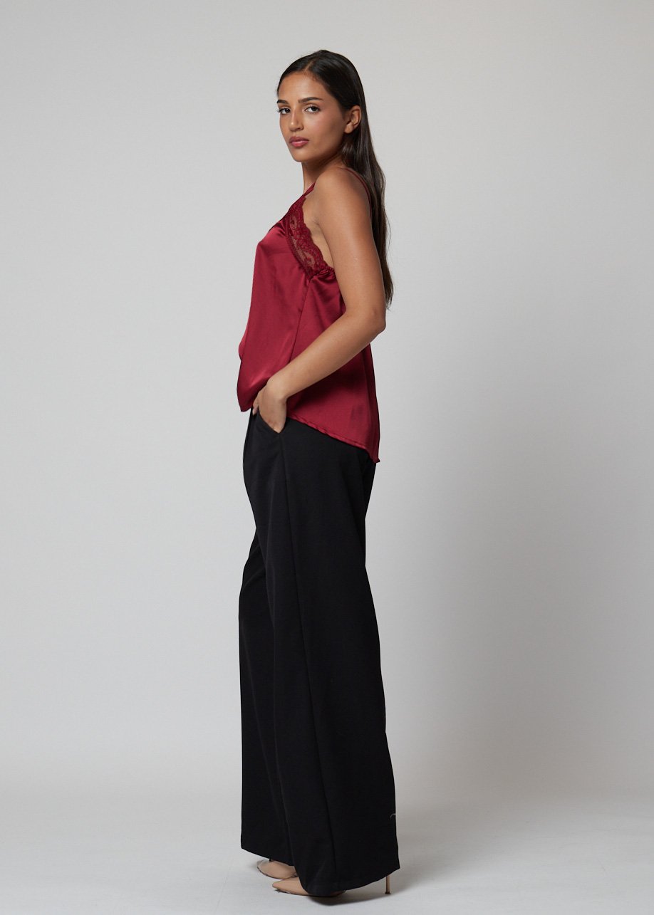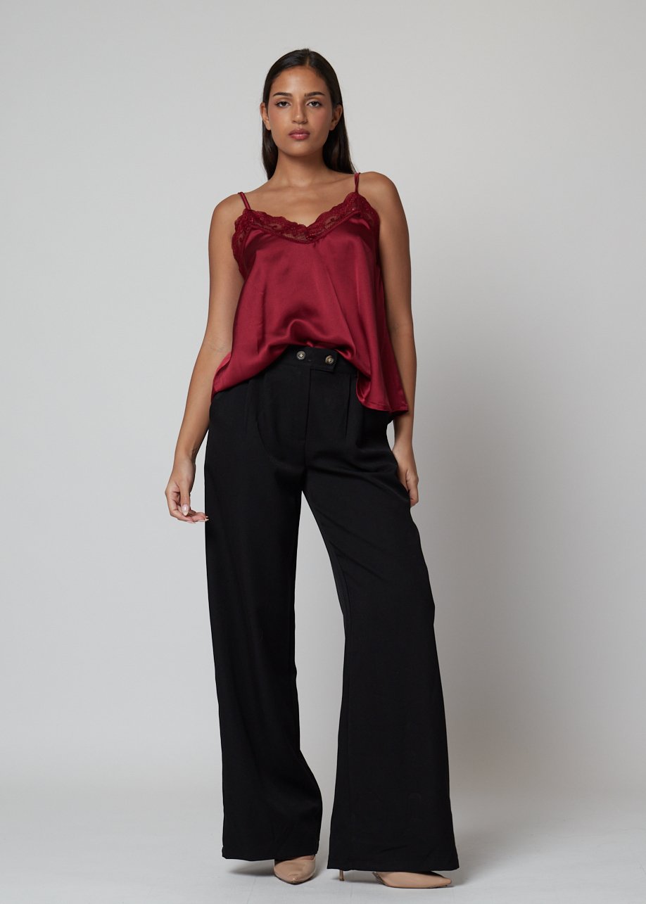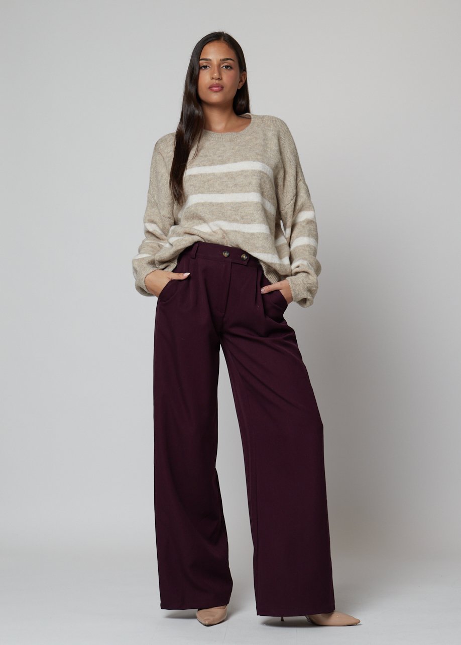 Disponible en varios tonos elegantes como azul marino y burdeos, este pantalón es perfecto para llevar con tops lenceros, blusas o jerséis amplios. Ideal para looks de oficina o para un estilo casual sofisticado que se adapta a cualquier ocasión.