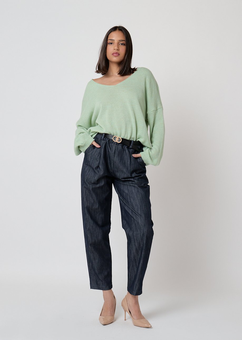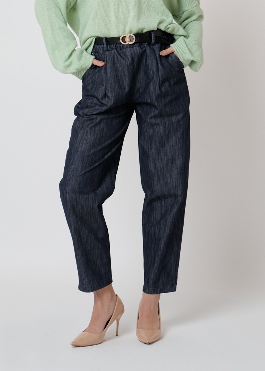 Pantalón denim casual con cintura elástica y corte relajado. Cómodo, versátil y perfecto para looks diarios con estilo.