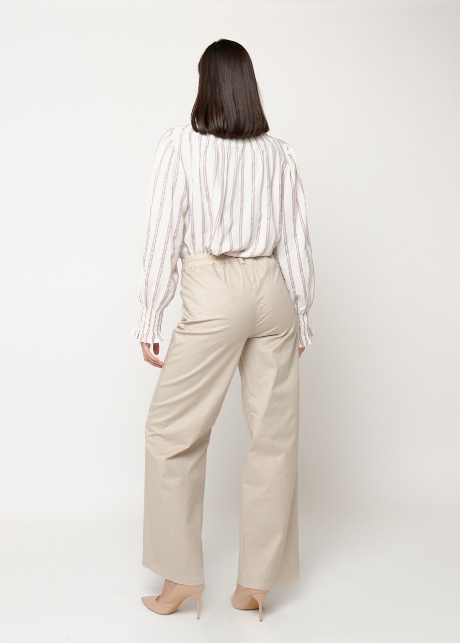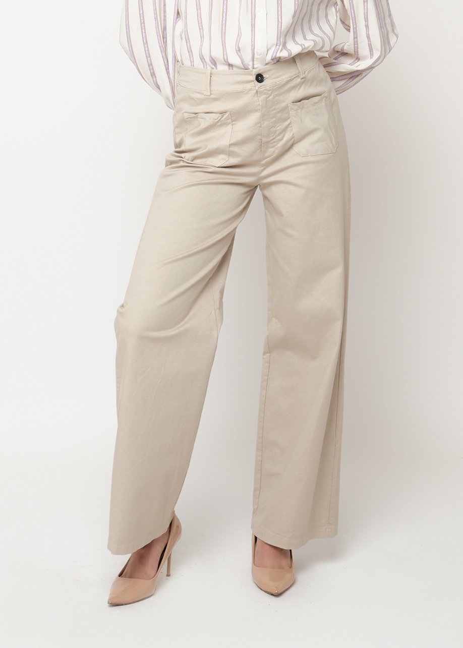 Pantalón beige de corte recto con cintura alta y bolsillos. Cómodo, elegante y perfecto para looks diarios con estilo.