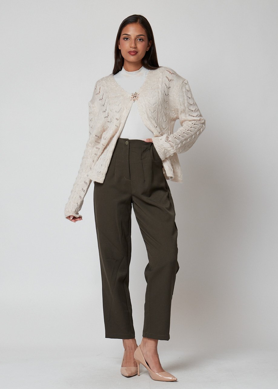 Pantalón Margaret recto en verde oliva, elegante y versátil para tus looks casuales y de oficina.