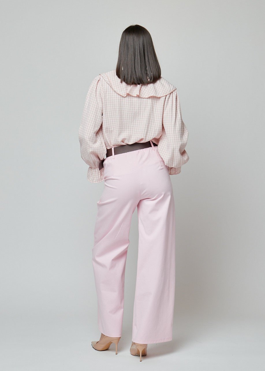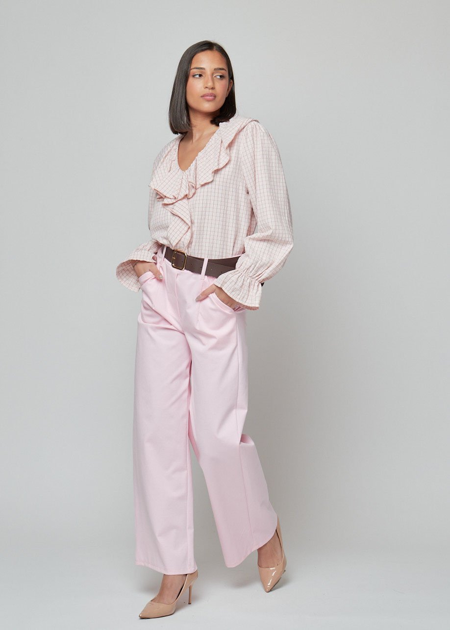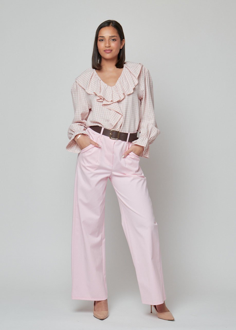 Pantalón casual rosa Petal de tiro alto y corte recto. Un básico femenino y versátil para primavera verano 2026.