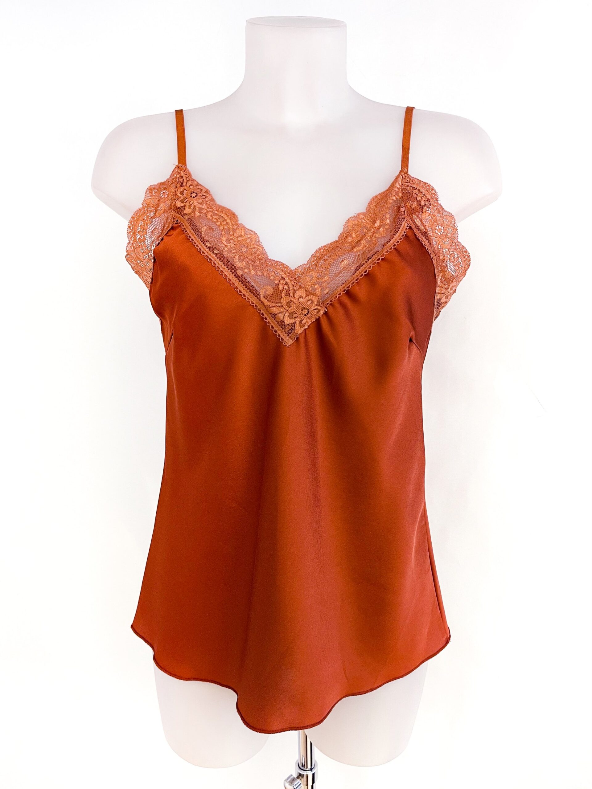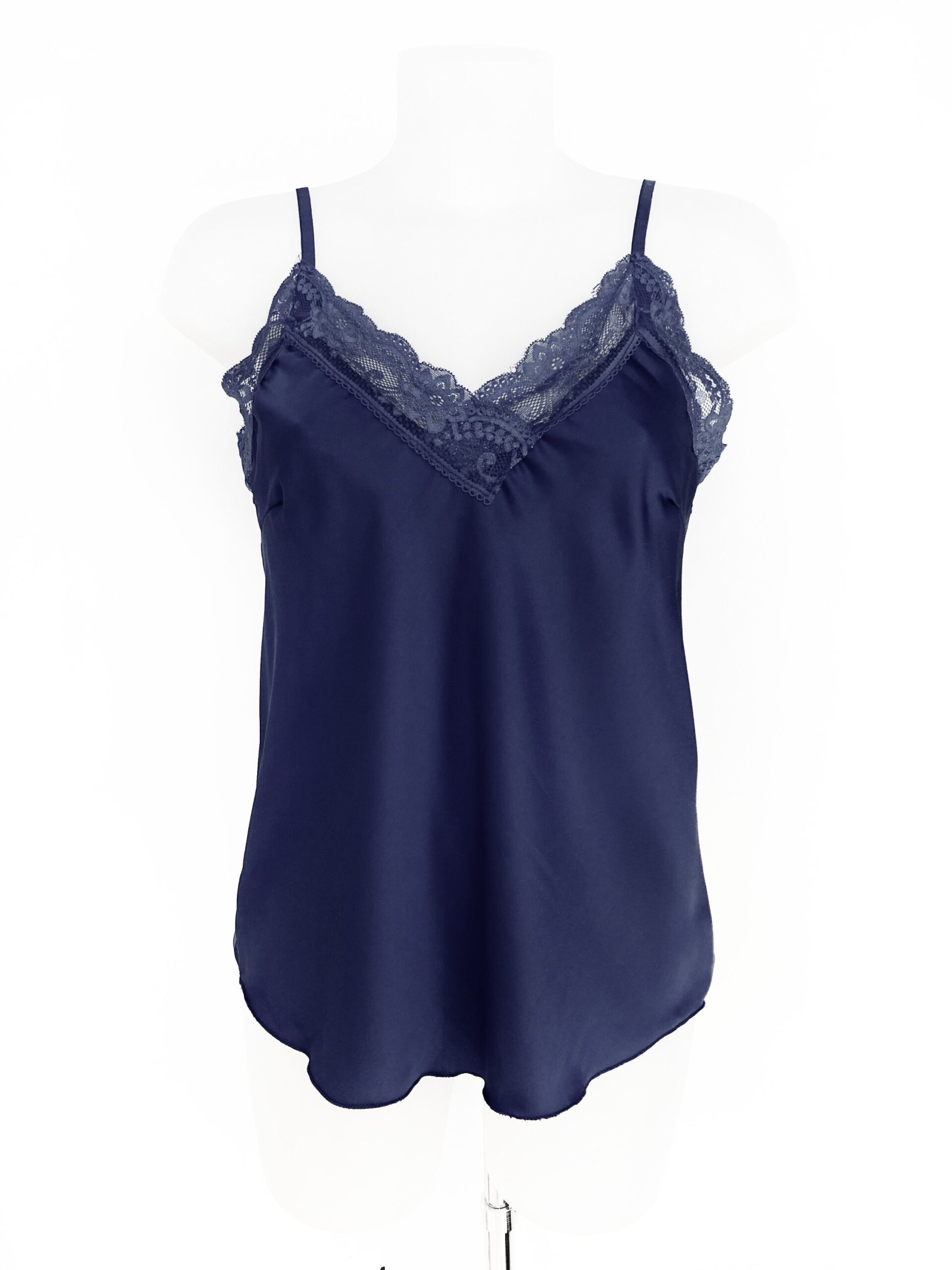 Top lencero de raso suave con detalle de encaje. Disponible en varios colores. Ideal para tus looks casuales y elegantes.