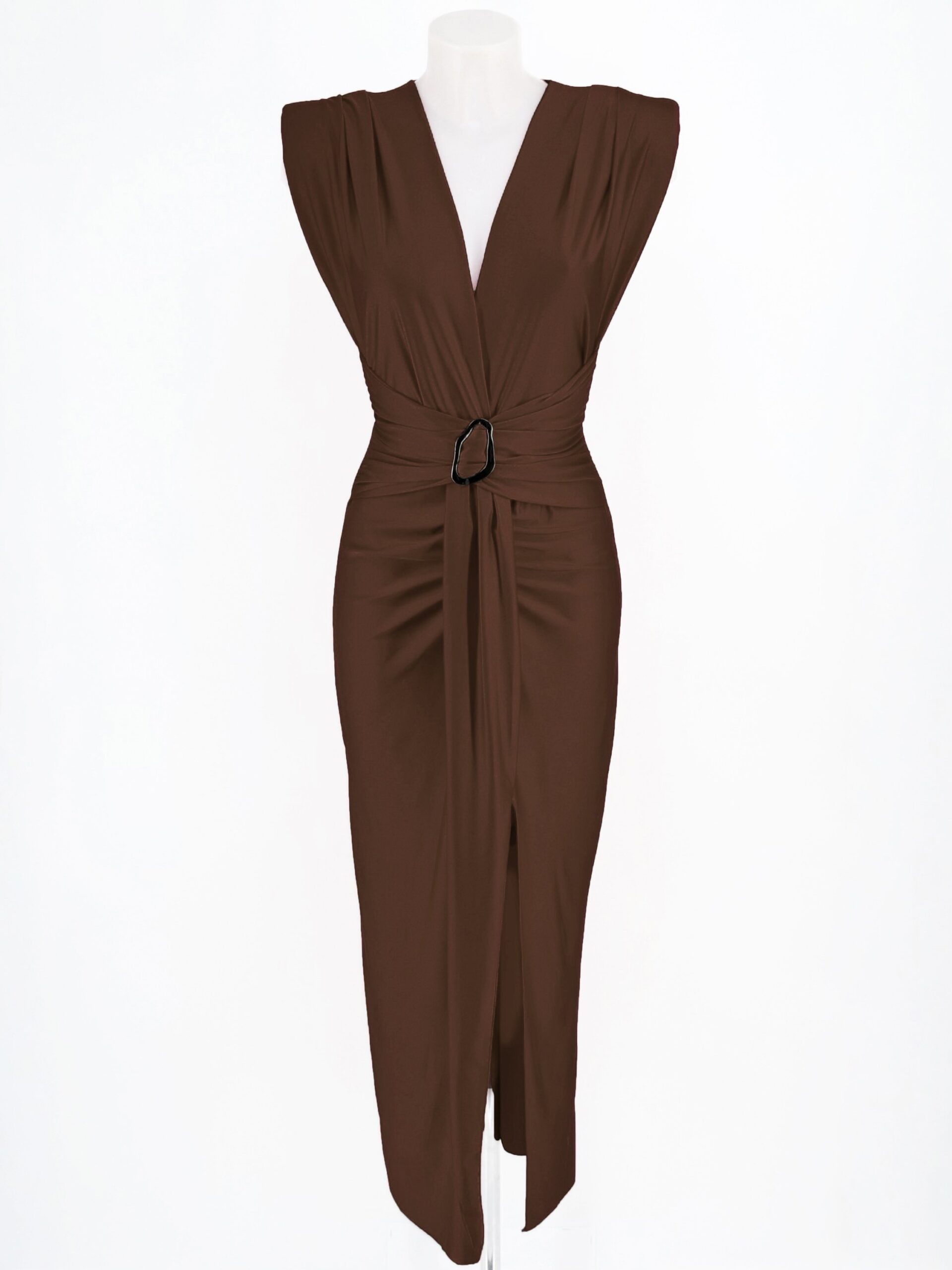El escote en V cruzado equilibra sensualidad y clase, y la abertura delantera añade movimiento y ligereza al look. Ideal para eventos de noche, cócteles o celebraciones especiales, este vestido transforma cada ocasión en un momento inolvidable.