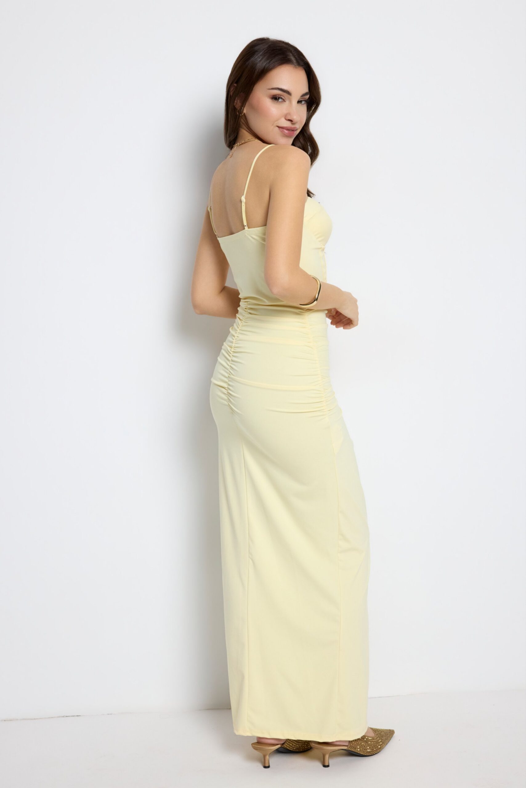 El Vestido Evento Butter destaca por su elegancia suave y su diseño extremadamente favorecedor. Su tono amarillo pastel aporta luz y sofisticación, convirtiéndolo en una elección ideal para eventos especiales donde buscas un look delicado, femenino y actual.