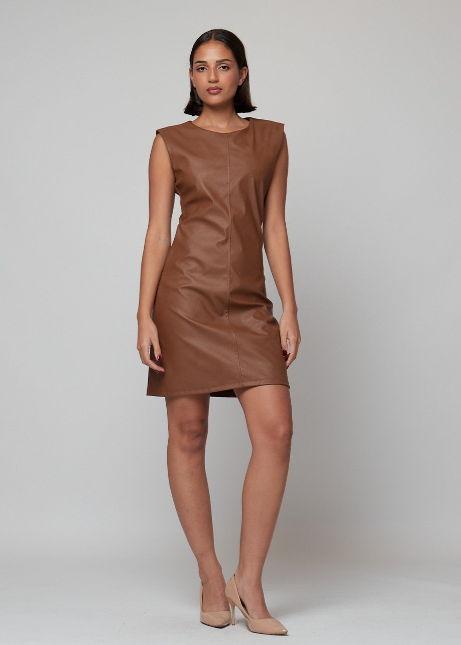 Vestido marrón efecto piel, moderno y sofisticado. Ideal para un look casual con un toque atrevido. ¡Descúbrelo en Maemuki Shop!