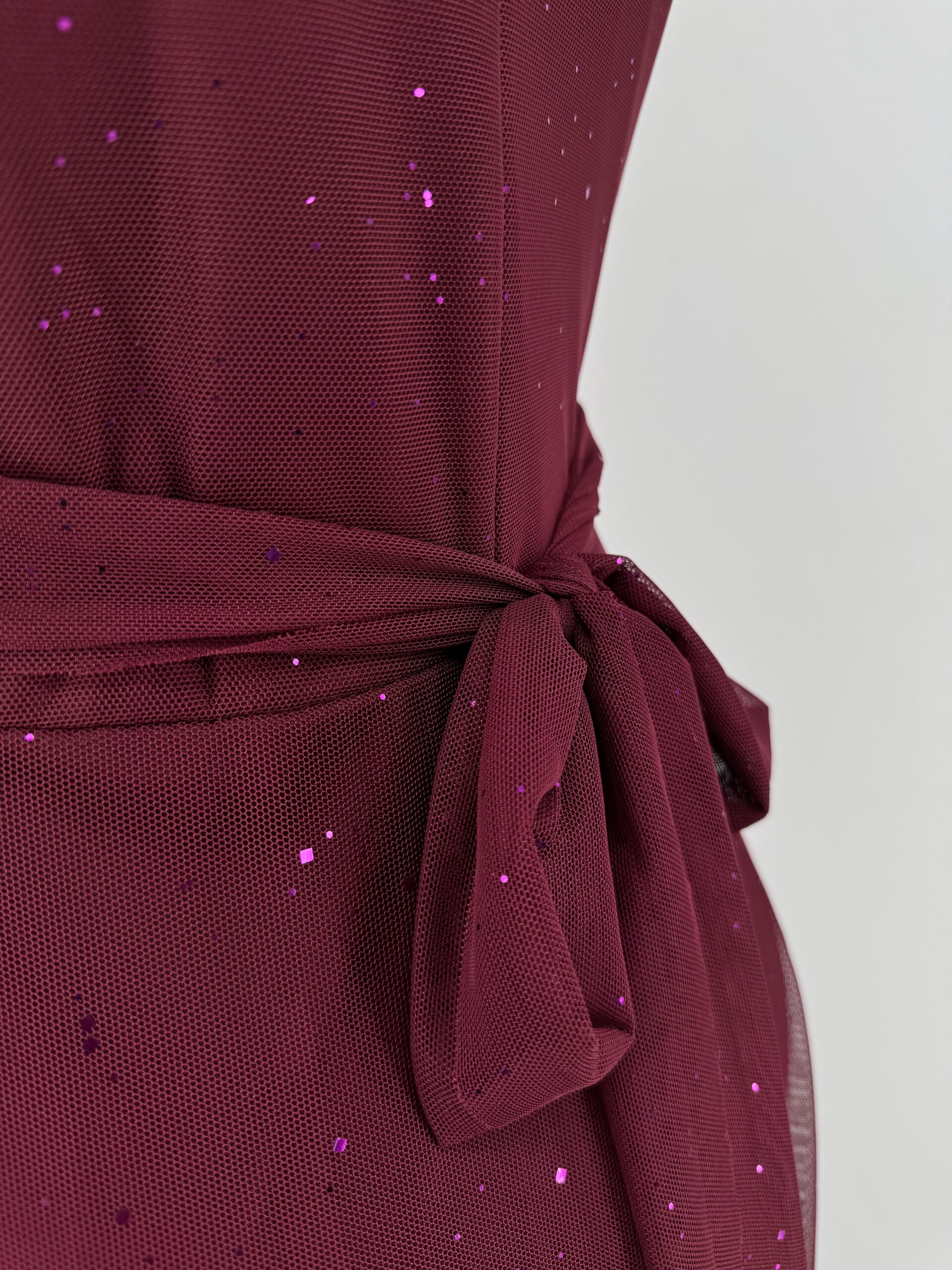 Un diseño pensado para eventos de gala, bodas o cenas especiales, donde el protagonismo está en los detalles. El cinturón entallado estiliza la figura, ofreciendo un equilibrio perfecto entre elegancia y modernidad.