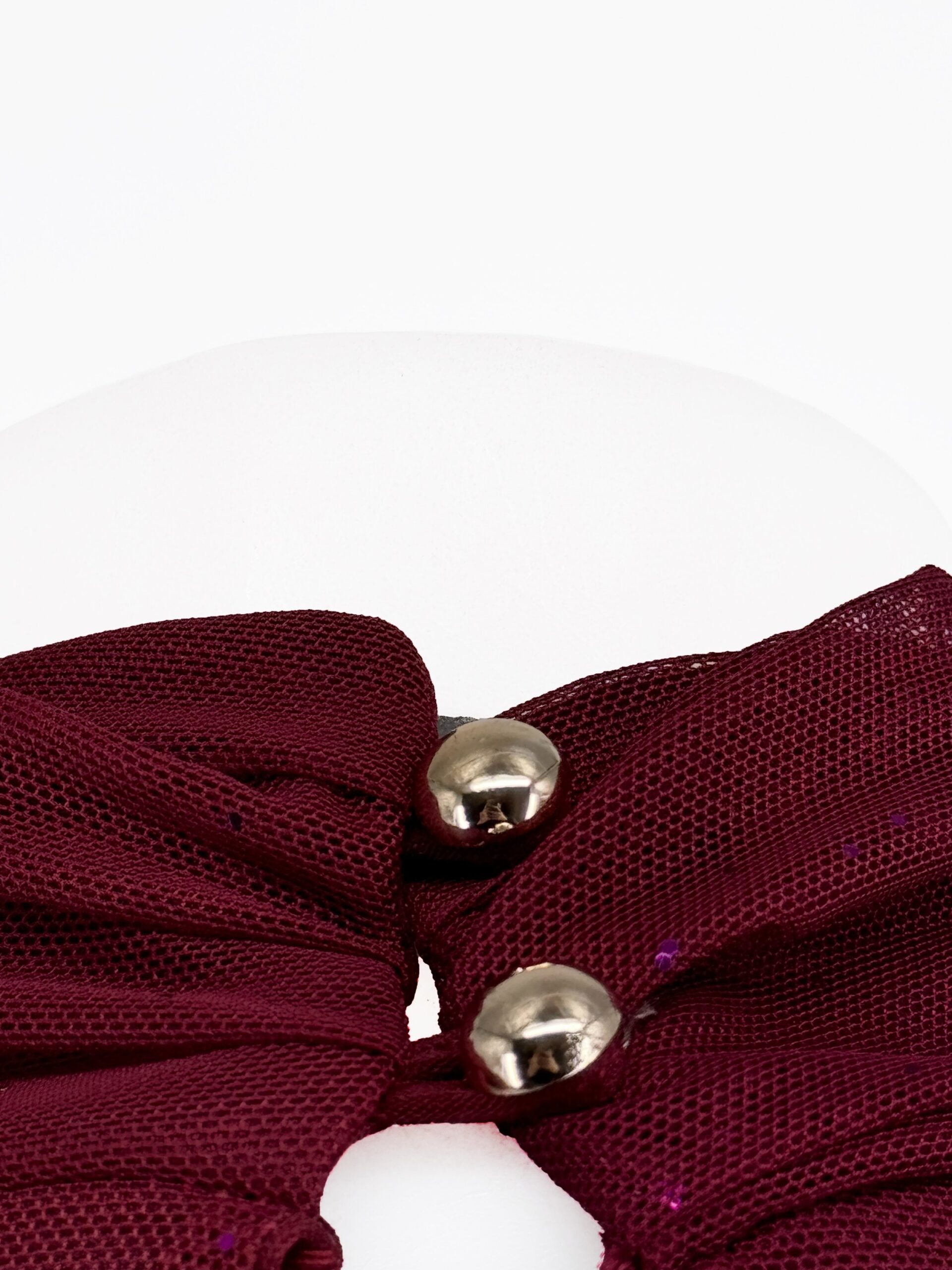 Mujer con fular de tul azul elegante para eventos, disponible en varios colores