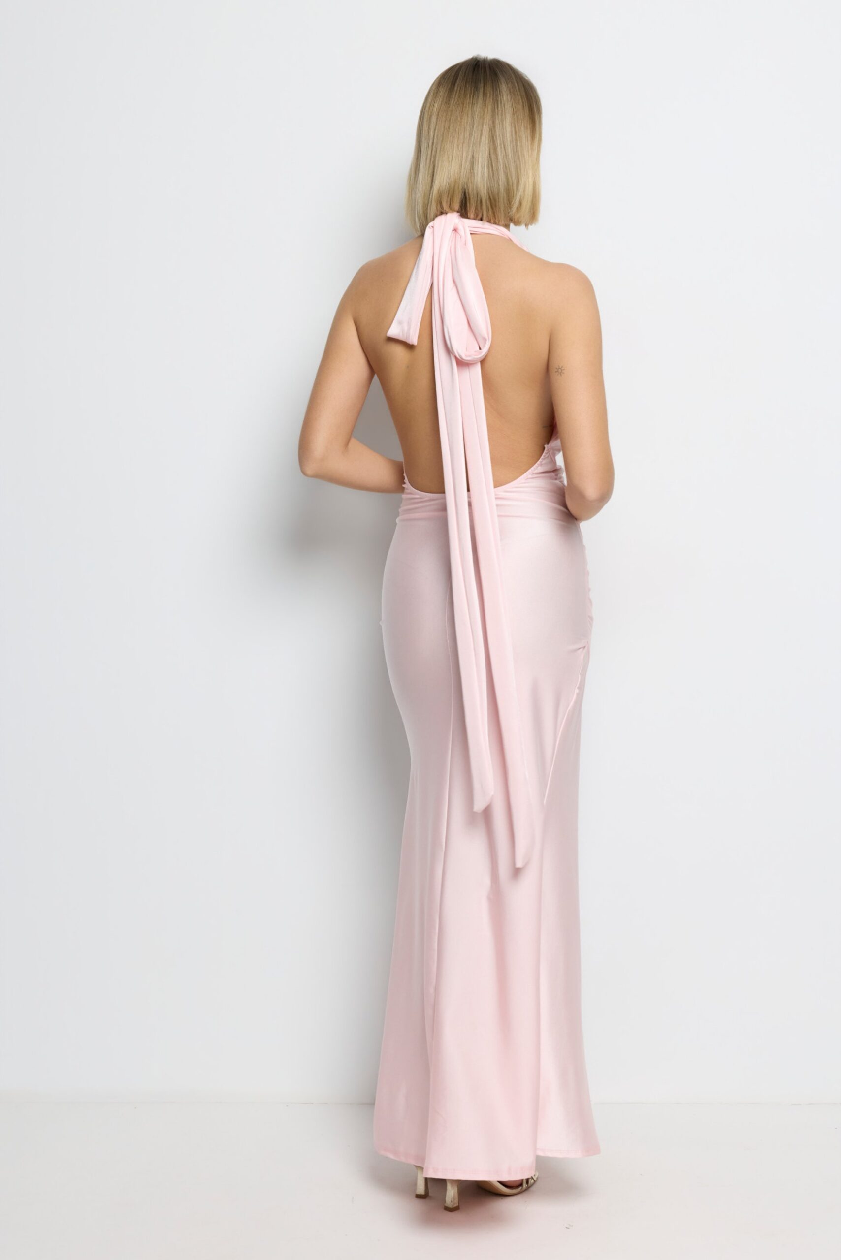 El Vestido Selene Halter es esa pieza que transforma completamente tu silueta. Diseñado para destacar, combina un escote halter profundo con un drapeado estratégico que estiliza y realza cada curva de forma elegante.